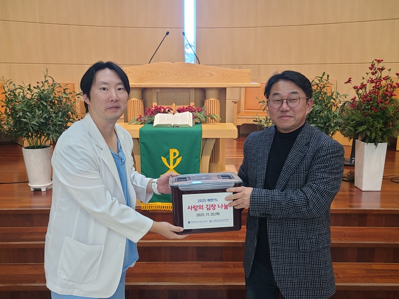 <2025년 사랑의 김장나눔 전달실> 일시 : 2025년 11월 20일(목) 오후 2시 장소: 계명대학교 동산병원 동천예배당 수증기관: 대구 기독교 원로원, 소망모자원, 새터민선교센터, 애망요양원, 예그리나 복지센터 등에 총 290개 전달