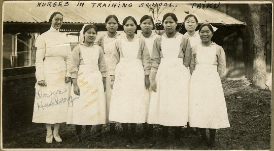 간호부 양성소 앞에서 클라라 헤드버그와 간호 학생들