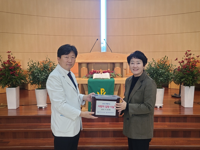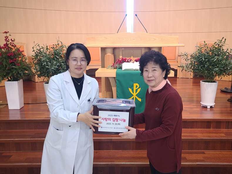 <2025년 사랑의 김장나눔 전달실> 일시 : 2025년 11월 20일(목) 오후 2시 장소: 계명대학교 동산병원 동천예배당 수증기관: 대구 기독교 원로원, 소망모자원, 새터민선교센터, 애망요양원, 예그리나 복지센터 등에 총 290개 전달